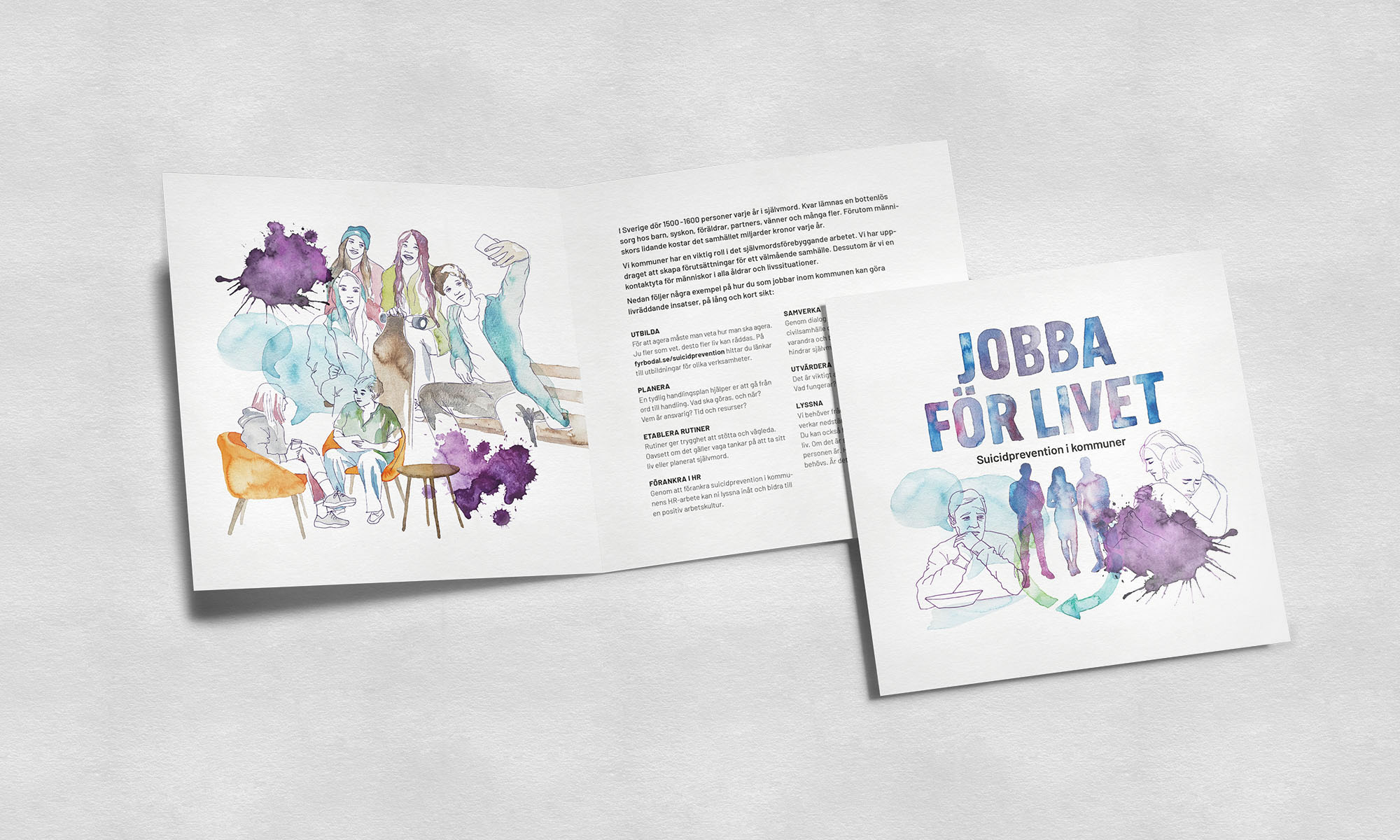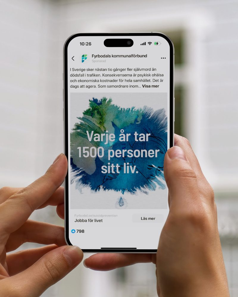 Varje år tar 1500 – 1600 personer i Sverige sina liv. Det är ungefär åtta gånger fler dödsfall än i trafiken. En av de aktörer som arbetar för att minska självmordstalet är Fyrbodals kommunalförbund. Vi fick uppdraget att hjälpa dem ta fram en informationsfilm och tryckmaterial om hur man kan jobba med suicidprevention i kommuner. Arbetet landade i konceptet Jobba för livet, som med ett inspirerande illustrationsmannér lyfter ett tungt, men viktigt ämne.